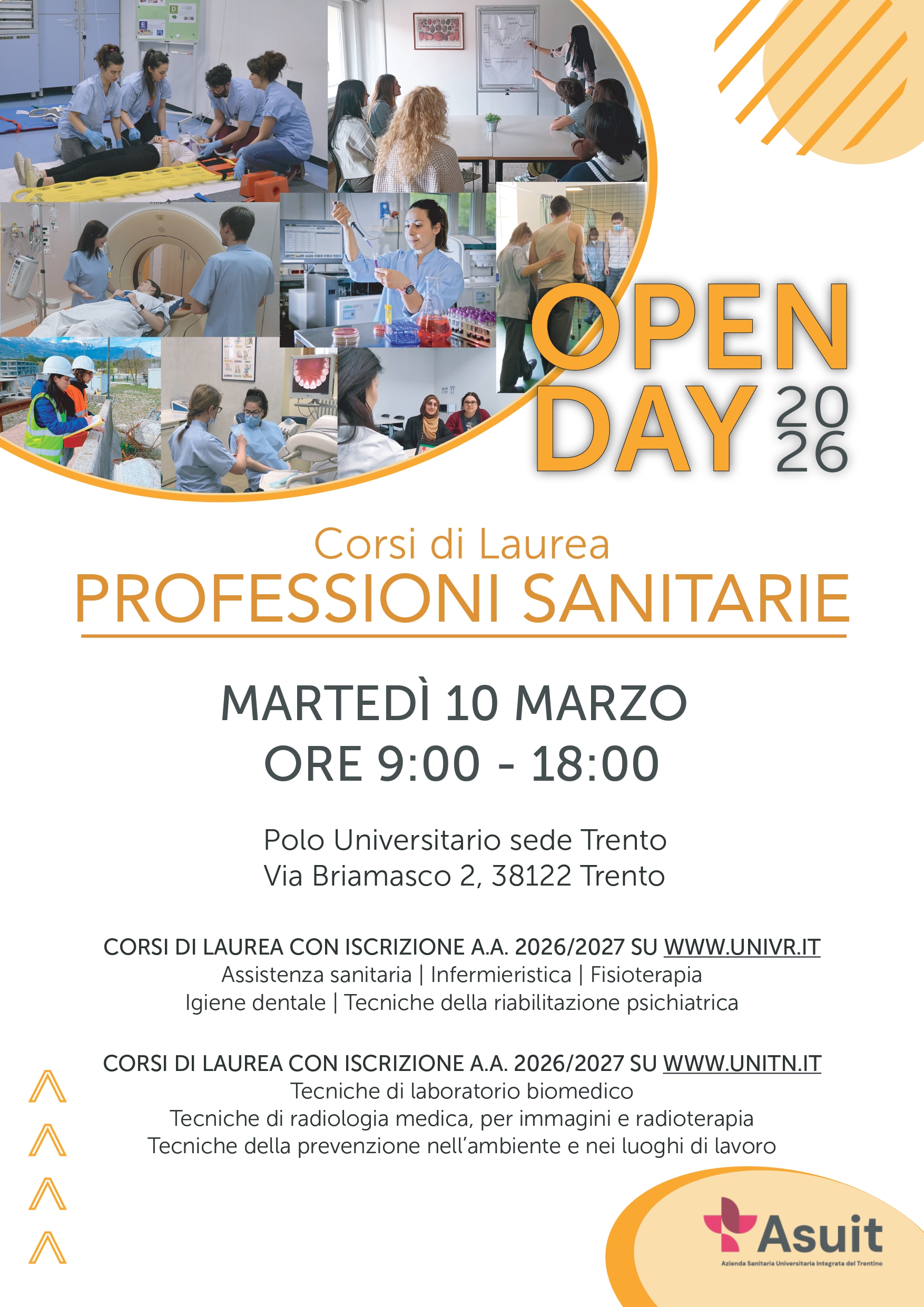 Nel corso dell'evento gli studenti illustreranno i piani di studio e le attività di laboratorio e forniranno indicazioni relative al test di ammissione e alle agevolazioni per la frequenza offerte dalla Provincia autonoma di Trento.