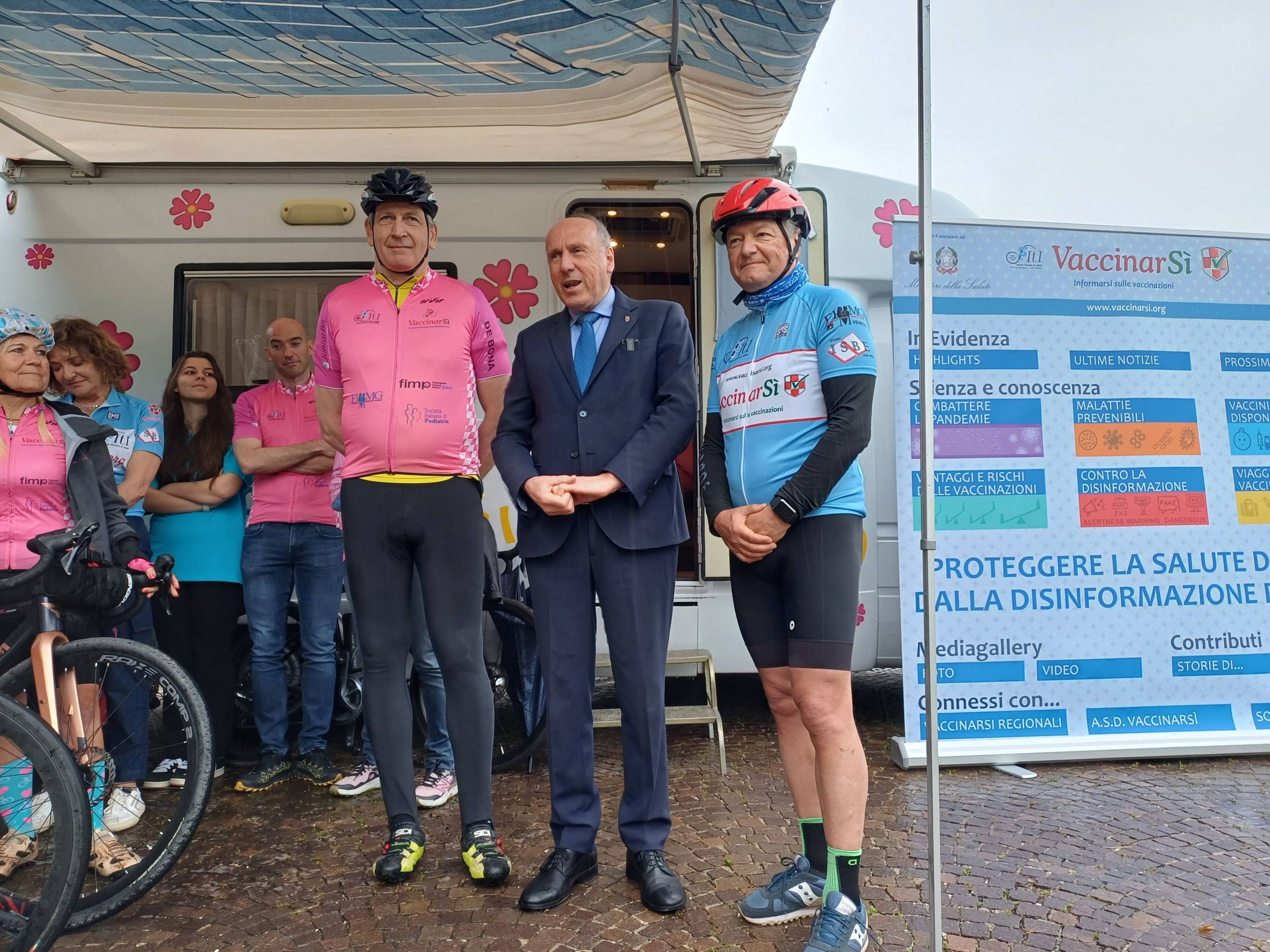 Presenti alla partenza, davanti alla sede Apss in via Degasperi, oltre a membri dell’associazione VaccinarSì e dipendenti Apss, il direttore generale Apss Antonio Ferro e il direttore sanitario dell'Azienda sanitaria dell'Alto Adige Josef Widmann. A dare avvio alla pedalata, nonostante le condizioni meteo avverse, è stato l'assessore alla salute della Provincia autonoma di Trento, Mario Tonina, a testimonianza del supporto istituzionale all'evento.